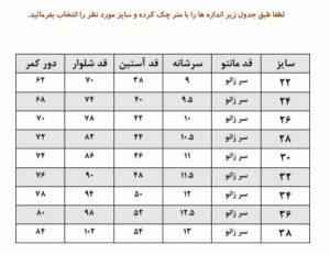 توجه: نمونه سایز ها در دبستان موجود می باشد. لطفا قبل از مراجعه هماهنگ بفرمایید.